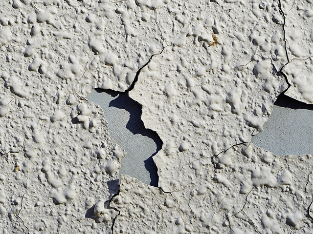 水を弾きにくくなった外壁には、水が溜まりやすくなり、湿気を帯びやすくなります。乾燥したり湿気を帯びたりを繰り返す結果、外壁に歪みが生じます。 - 歪みによりひび割れが起こる
